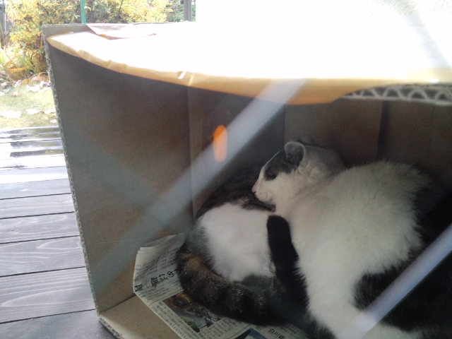 寒くなってきたので段ボールのネコのお家も大活躍