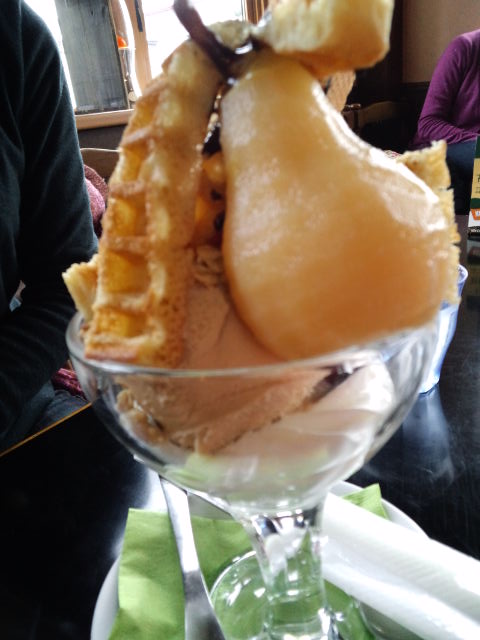 パフェに丸ごと洋なし!?