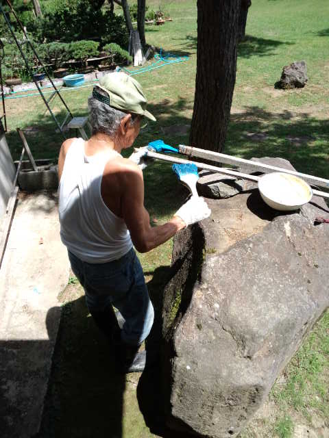 こんな暑い中、父と屋根のペンキ塗り。