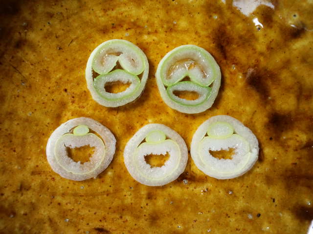 長ネギを切ってきたらこんなに笑っている顔が出てきた。