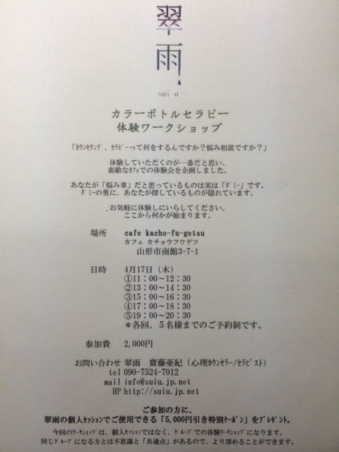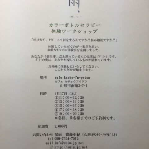 『カラーボトルセラピー体験ワークショップ』のお知らせ