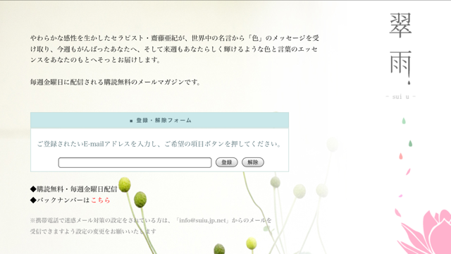 HP作って、翠雨メルマガを始めたときはこのような趣旨のメルマガだったんだ。