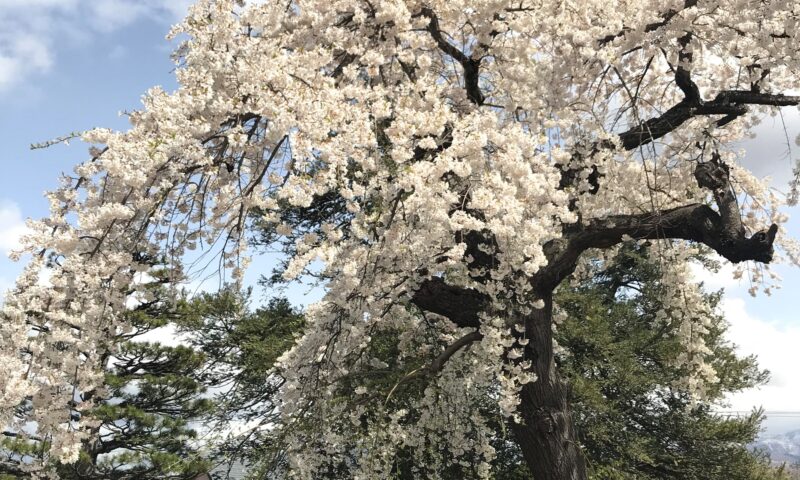 桜が満開の山形で、
