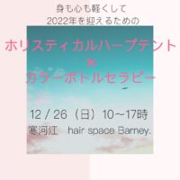 12月26日は、『ホリスティカルハーブテント®×カラーボトルセラピー』で2022年を迎える準備をしましょう♪を寒河江にて開催します!お昼の時間帯のみご予約可能となっております!